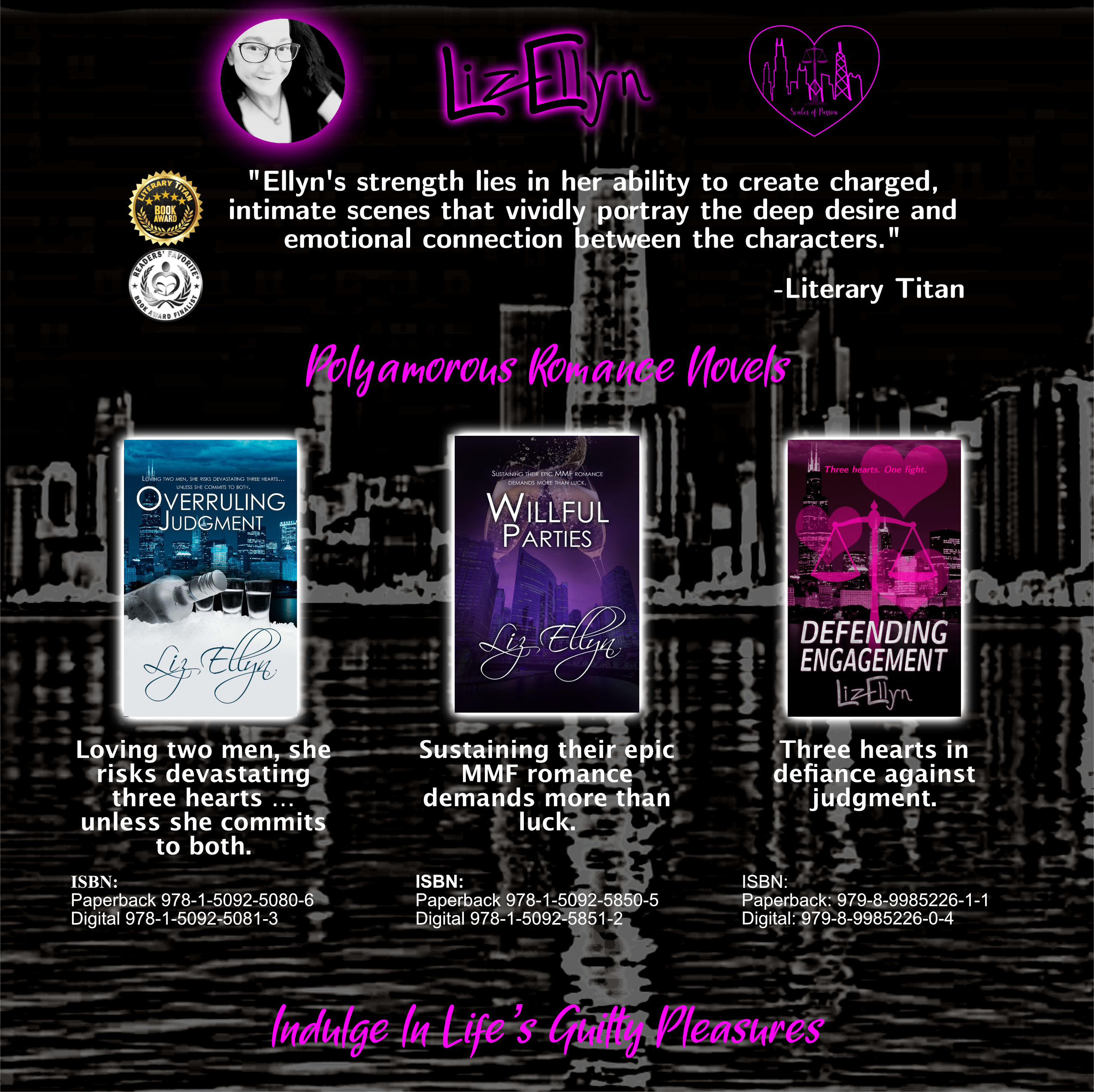 Books Click on cover to see more information about each book Buy Overruling Judgment Buy Willful Parties Pre-Order Defending Engagement Share this:Share Click to share on X (Opens in new window) X Click to share on Pinterest (Opens in new window) Pinterest Click to share on Facebook (Opens in new window) Facebook Click to share on Tumblr (Opens in new window) Tumblr Click to share on Reddit (Opens in new window) Reddit Like Loading...